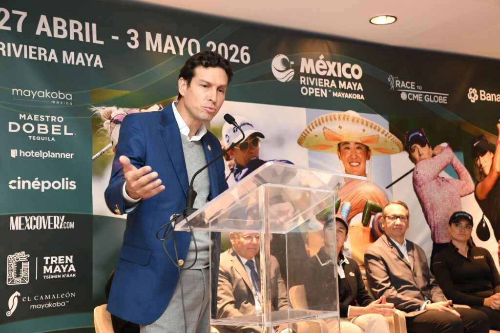 Durante la presentación del LPGA Riviera Maya Open at Mayakoba, Gustavo Santoscoy García, director del certamen y CEO de GS Sports Management, agradeció a quienes hacen posible que este torneo se mantenga como uno de los más importantes en el calendario del tour femenil.
