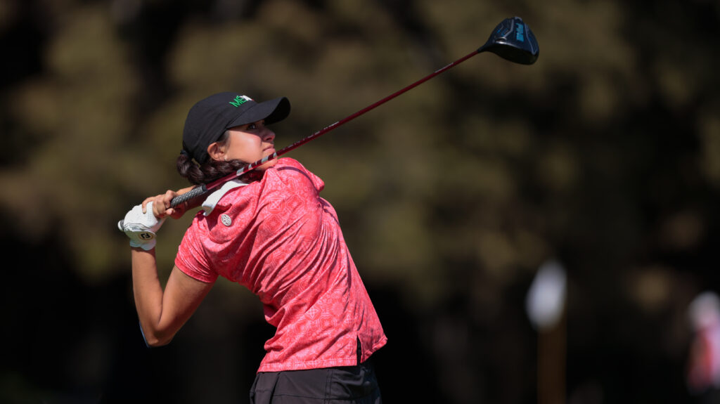El tercer lugar es de momento para Regina Roldán, de la Universidad de San José, y quien compitió activamente en los torneos de la Federación Mexicana de Golf, cerró este miércoles con -1, y con un score global de 147 golpes.
